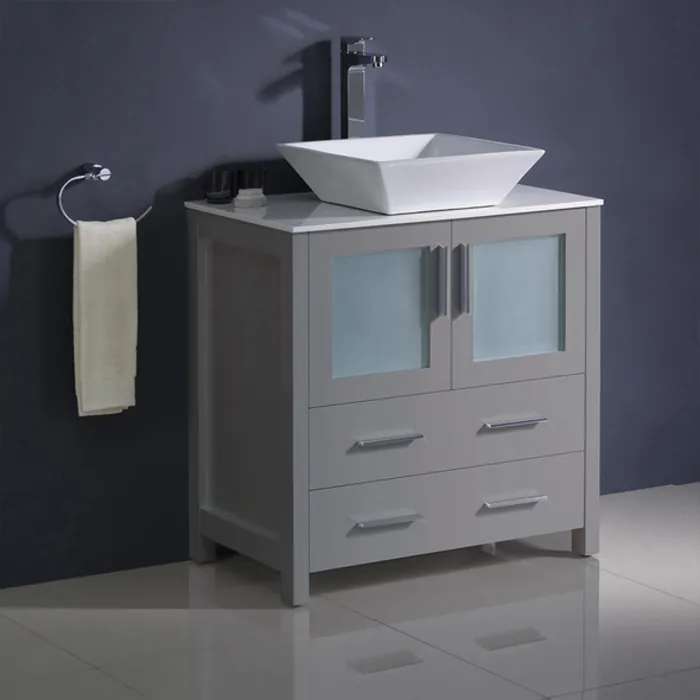 Fresca Torino 30 inch Gray Modern Bathroom Cabinet W/ Top & Vessel Sink FCB6230GR-CWH-V