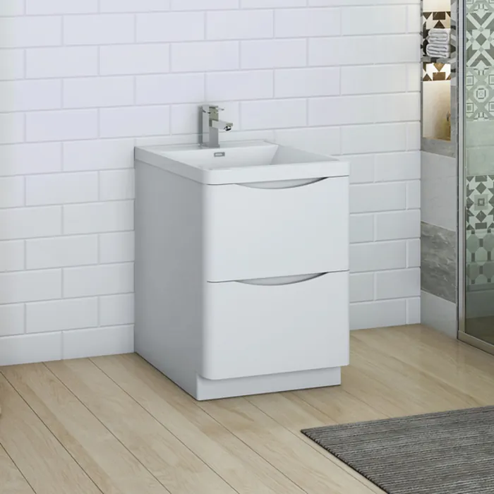 Fresca Tuscany 24 inch Glossy White Free Standing Modern Bathroom Cabinet W/ Integrated Sink FCB9124WH-I