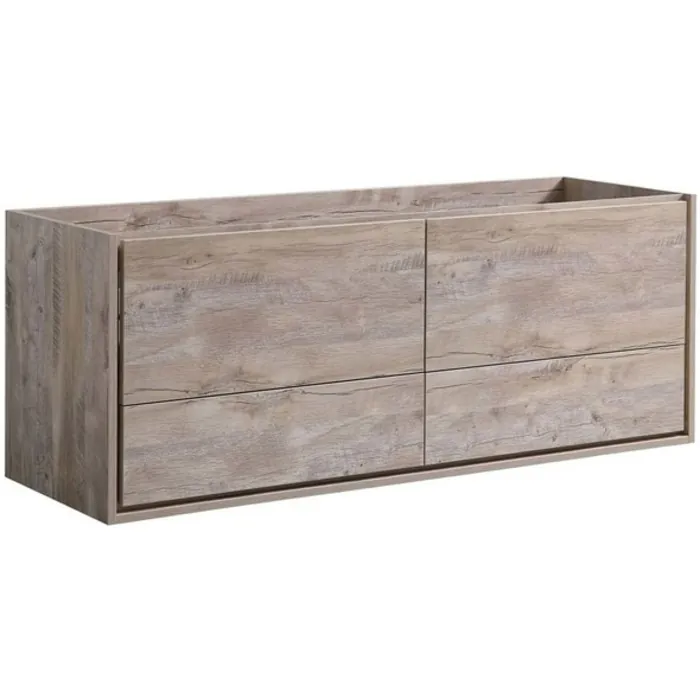 Fresca Catania 60 inch Rustic Natural Wood Wall Hung Double Sink Modern Bathroom Cabinet FCB9260RNW-D