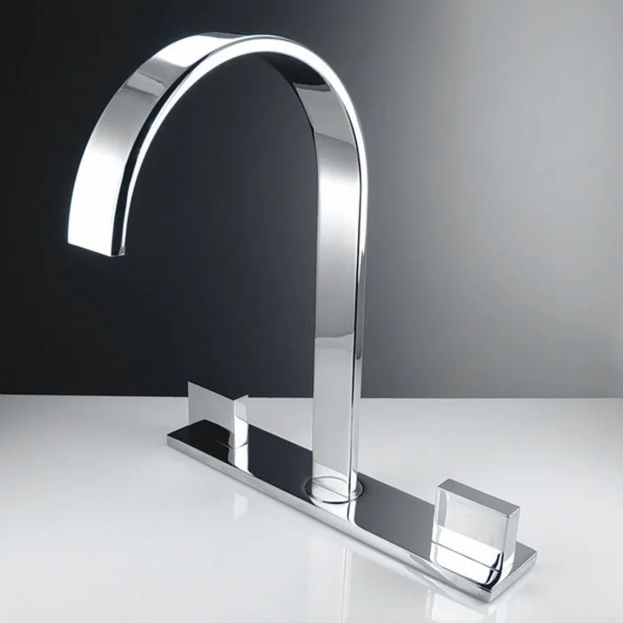 This widespread faucet is made from heavy duty brass with a chrome finish. Features ceramic valves for longevity and watertight functionality.