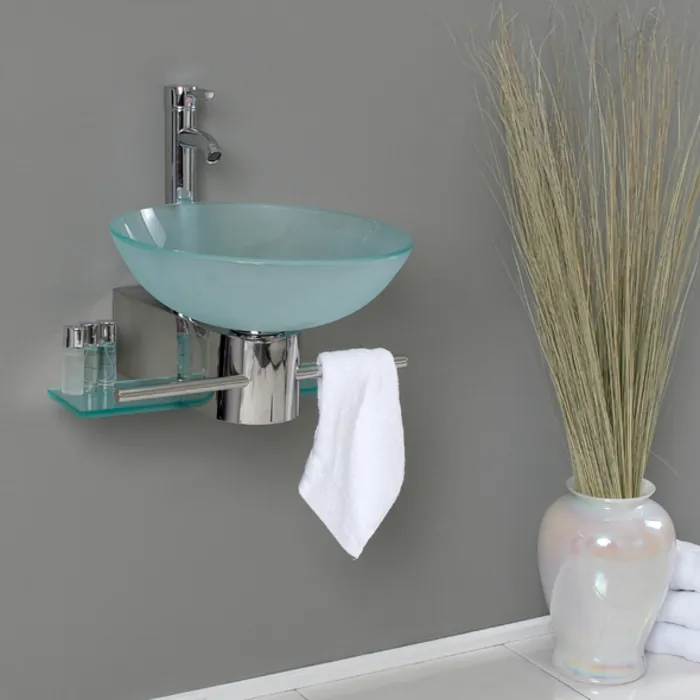 Fresca Cristallino 18 inch Modern Glass Bathroom Vanity W/ Frosted Vessel Sink FVN1012