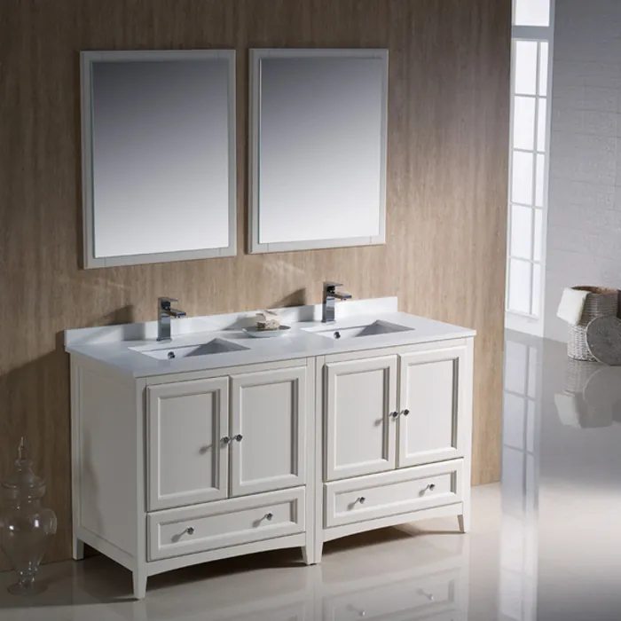 Fresca Oxford 60 inch Antique White Traditional Double Sink Bathroom Vanity FVN20-3030AW