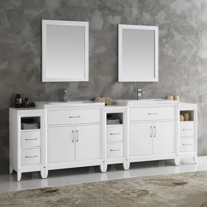Fresca Cambridge 96 inch White Double Sink Traditional Bathroom Vanity W/ Mirrors FVN21-96WH
