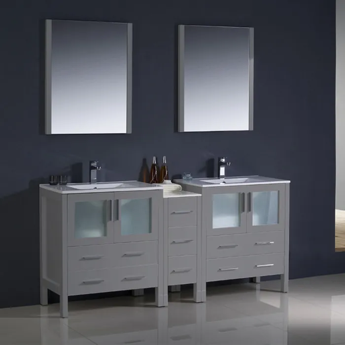 Fresca Torino 72 inch Gray Modern Double Sink Bathroom Vanity W/ Side Cabinet & Integrated Sinks FVN62-301230GR-UNS