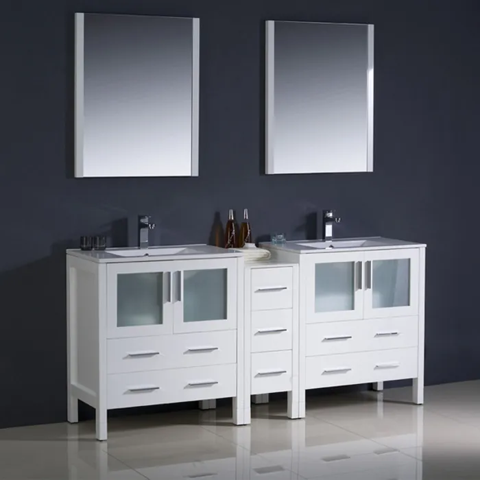 Fresca Torino 72 inch White Modern Double Sink Bathroom Vanity W/ Side Cabinet & Integrated Sinks FVN62-301230WH-UNS