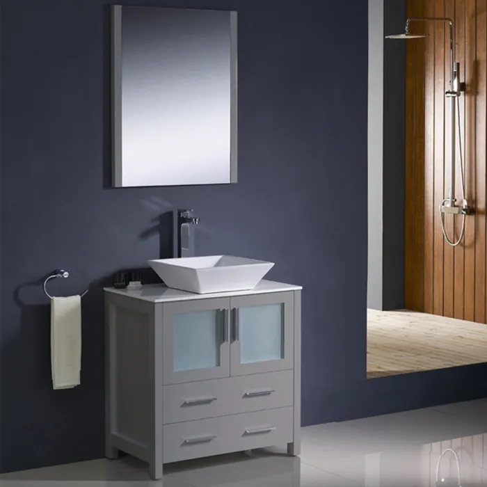Fresca Torino 30 inch Gray Modern Bathroom Vanity W/ Vessel Sink FVN6230GR-VSL