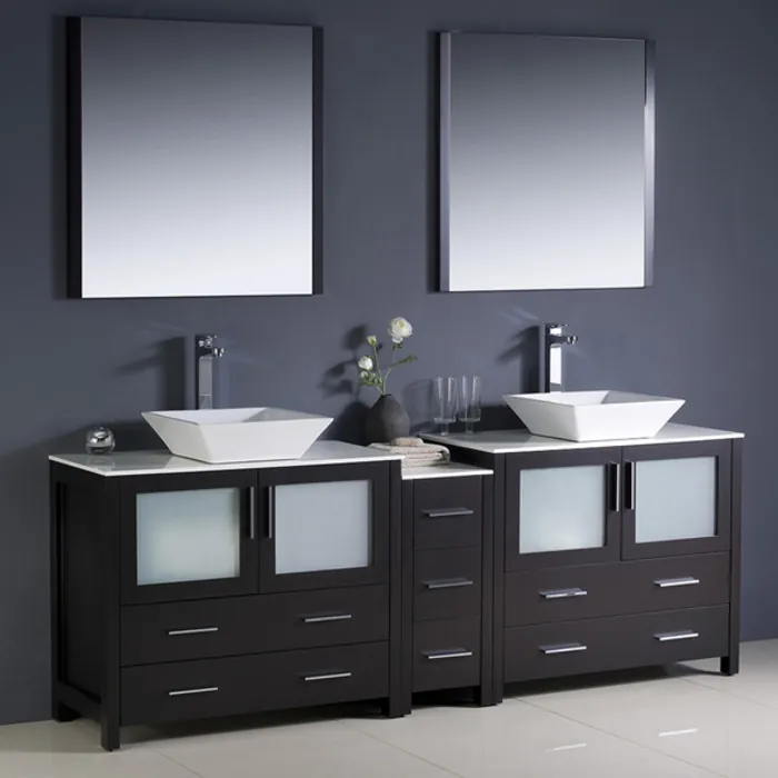Fresca Torino 84 inch Espresso Modern Double Sink Bathroom Vanity W/ Side Cabinet & Vessel Sinks FVN62-361236ES-VSL