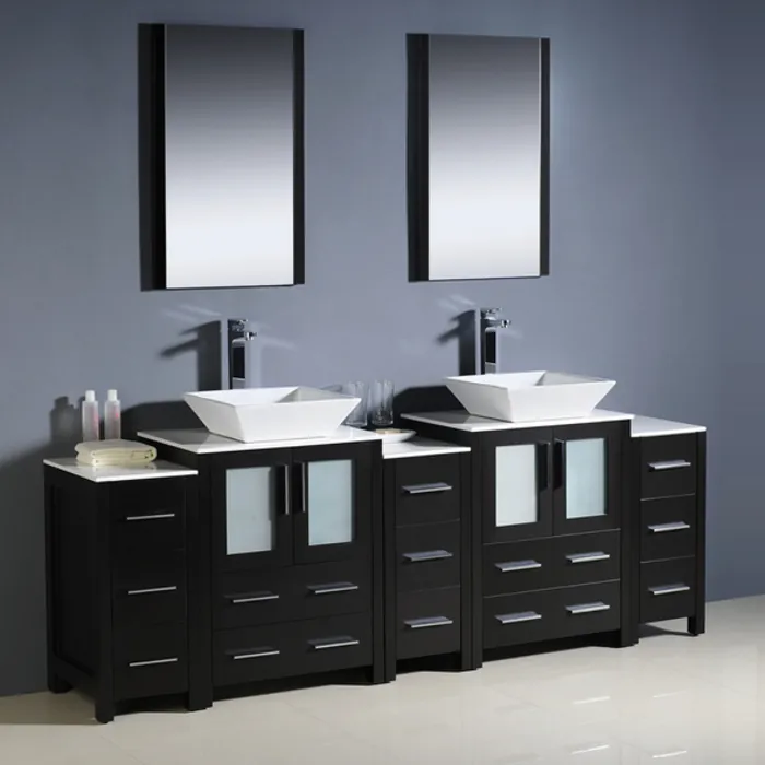 Fresca Torino 84 inch Espresso Modern Double Sink Bathroom Vanity W/ 3 Side Cabinets & Vessel Sinks FVN62-72ES-VSL