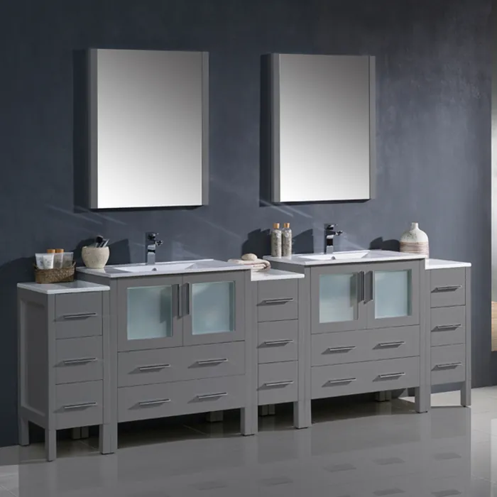 Fresca Torino 96 inch Gray Modern Double Sink Bathroom Vanity W/ 3 Side Cabinets & Integrated Sinks FVN62-96GR-UNS