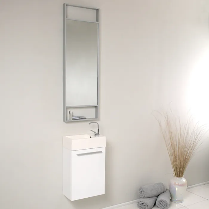 Fresca Pulito 16 inch Small White Modern Bathroom Vanity W/ Tall Mirror FVN8002WH
