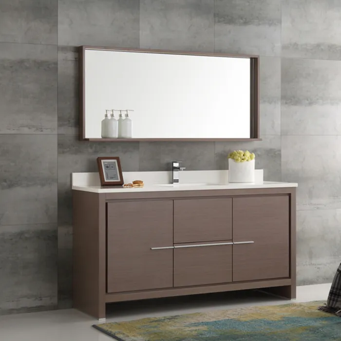 Fresca Allier 60 inch Gray Oak Modern Single Sink Bathroom Vanity W/ Mirror FVN8119GO-S