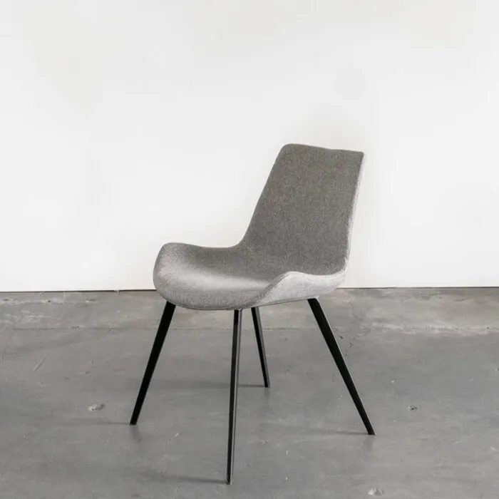 Contemporary dining chair with clean lines and very comfortable padded upholstered seat in Pale Blue, Soft Gray, or Dark Gray. The Dover Dining Chair's black steel legs create a sharp modern style that will update any Dining Room decor. Sold in set of 2 dining chairs.