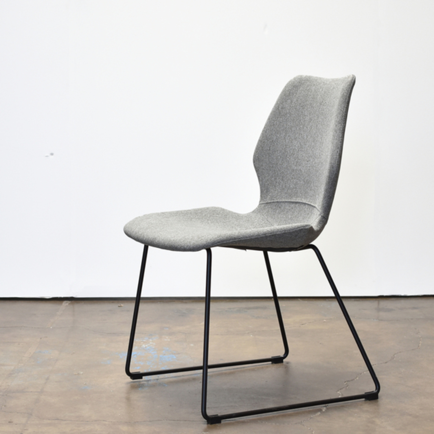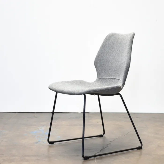 Nina is throroughly modern -- featuring a light grey fabric seat that is deceptively well-padded and comfy especially given its slim lines and black steel legs that have just the perfect amount of edge.