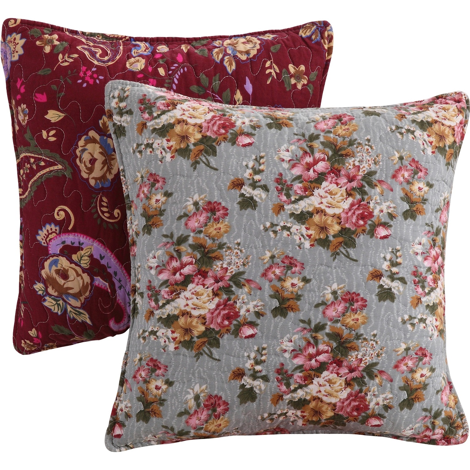 Antique Chic spreads a riot of garden colors across your scene. Fashion forward prints create a unique looking pillow pair.Pillow100% Cotton face, backQuilted pillow facesStuffed with removable polyester pillow insert (spot clean insert)PREWASHED and pre-shrunk for a soft, comfortable feel and a perfect fit right out of the packageMachine washable cover