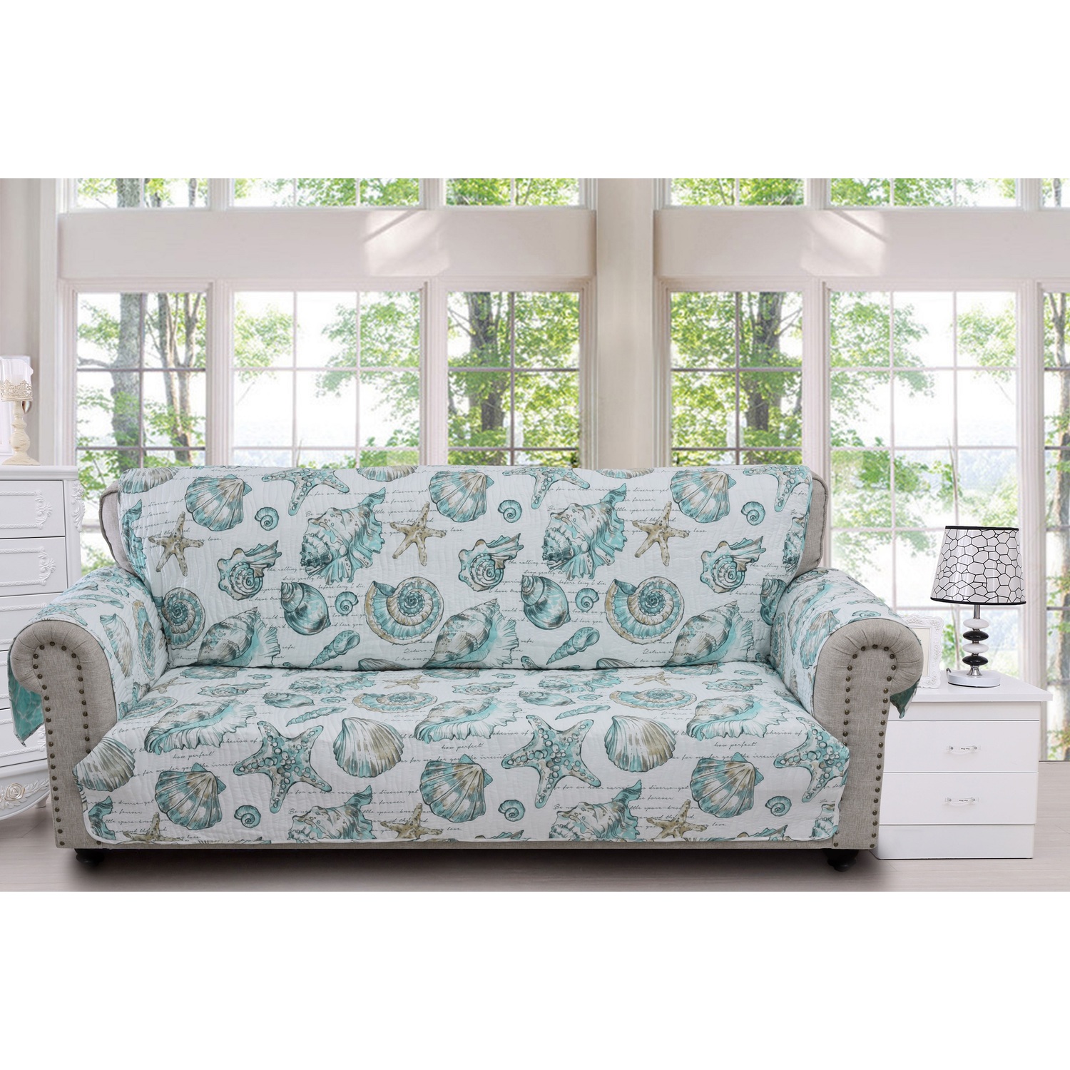 This coastal seashell furniture protector brings the casual leisure of seaside beach life into your home. Furniture ProtectorFeatures removable elastic strap on back to hold the protector in place on furniture. Reversible protector has two sides for two looks in one. Generously sized to provide ample coverage on most home furniture. Machine washable.