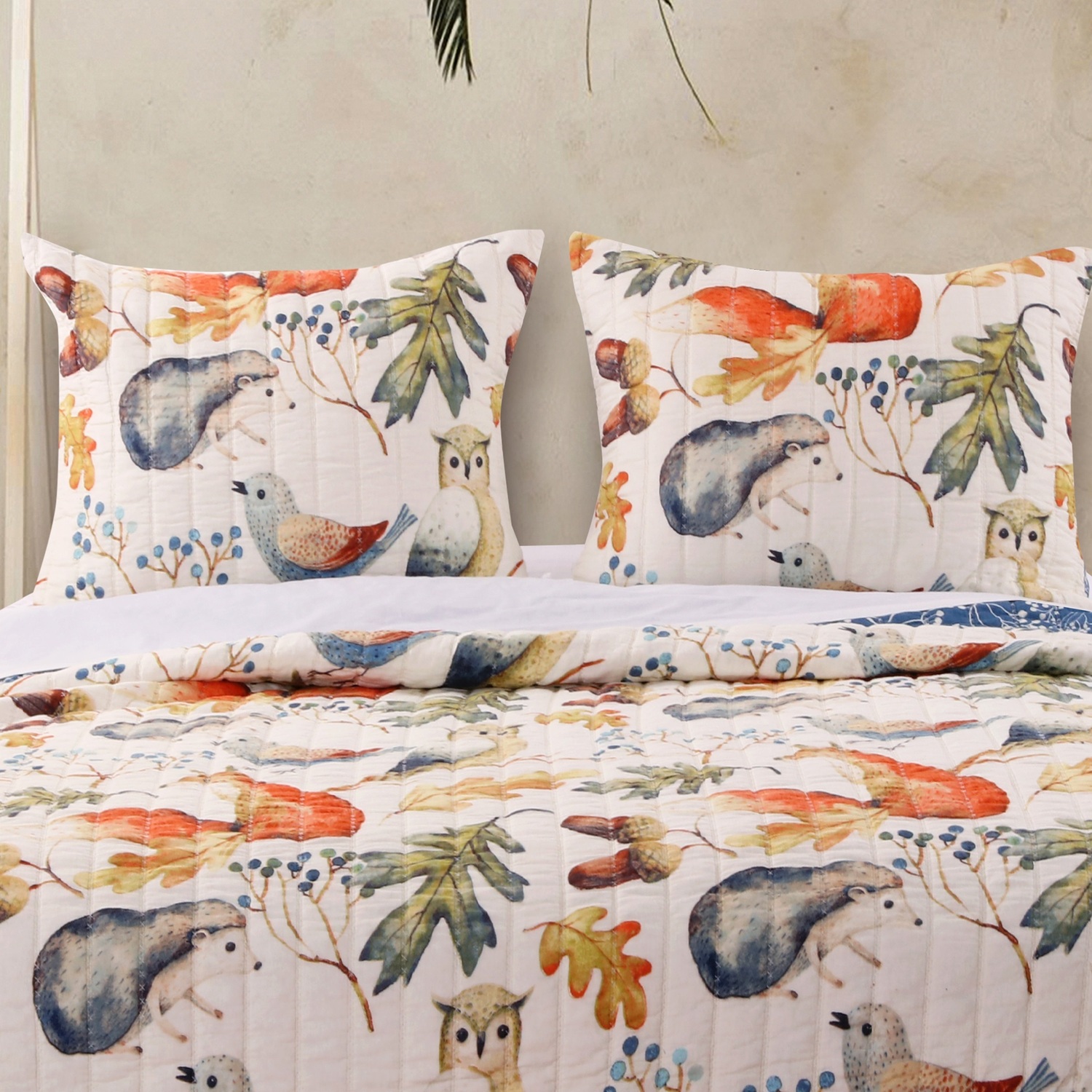 Bring a menagerie of friendly forest creatures into your home. With owls, foxes, hedgehogs and songbirds, the Willow sham celebrates a gentle forest kingdom. Reverses to a budding willow print on lake blue. Zipper closure to make the sham reversible and to hold your pillow in place . Machine quilted with fabric-bound edges for durability. Dimensions: Standard sham measures 20x26"es; King sham measures 20x36"es. 100% polyester microfiber shell with cotton rich fill. Machine wash. Imported. ShamDouble down on the look with extra pillow shams!Zipper closure to hold your pillow in place and make it reversibleReverses to a complementary print for two looks in one!PREWASHED and pre-shrunk for a soft, comfortable feel and a perfect fit right out of the packageMachine washable.