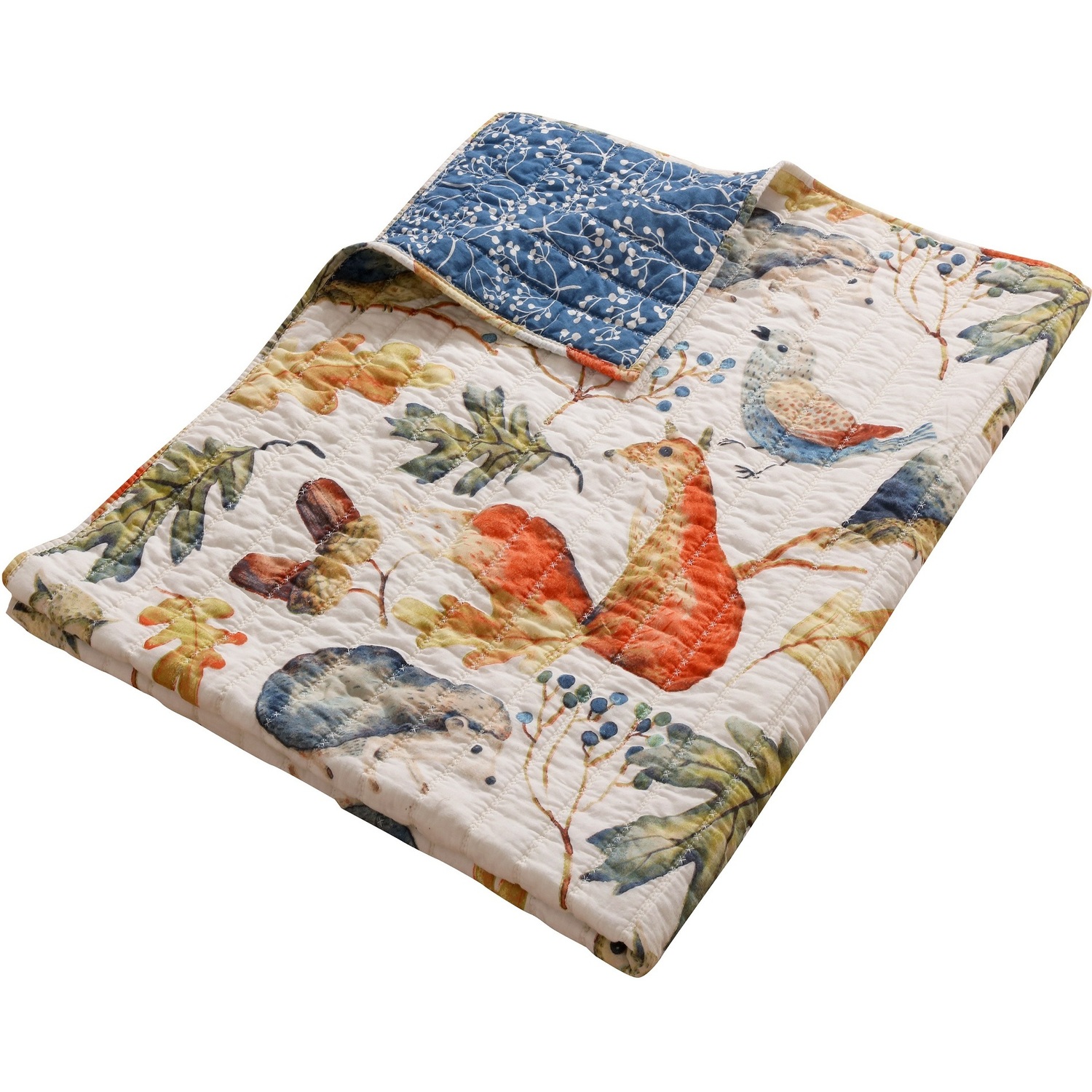 Bring a menagerie of friendly forest creatures into your home. With owls, foxes, hedgehogs and songbirds, the Willow throw celebrates a gentle forest kingdom. Reverses to a budding willow print on lake blue. Machine quilted with fabric-bound edges for durability. Dimensions: 50 x 60"es (+/- 2"es). 100% polyester microfiber shell with cotton rich fill. Machine wash. Imported. AccessoryThe perfect quilt for your couch or easy chair, also makes a great layering pieceMachine quilted for durability and surface interestReverses to a complementary print for two looks in one!PREWASHED and pre-shrunk for a soft, comfortable feel and a perfect fit right out of the packageMachine washable.