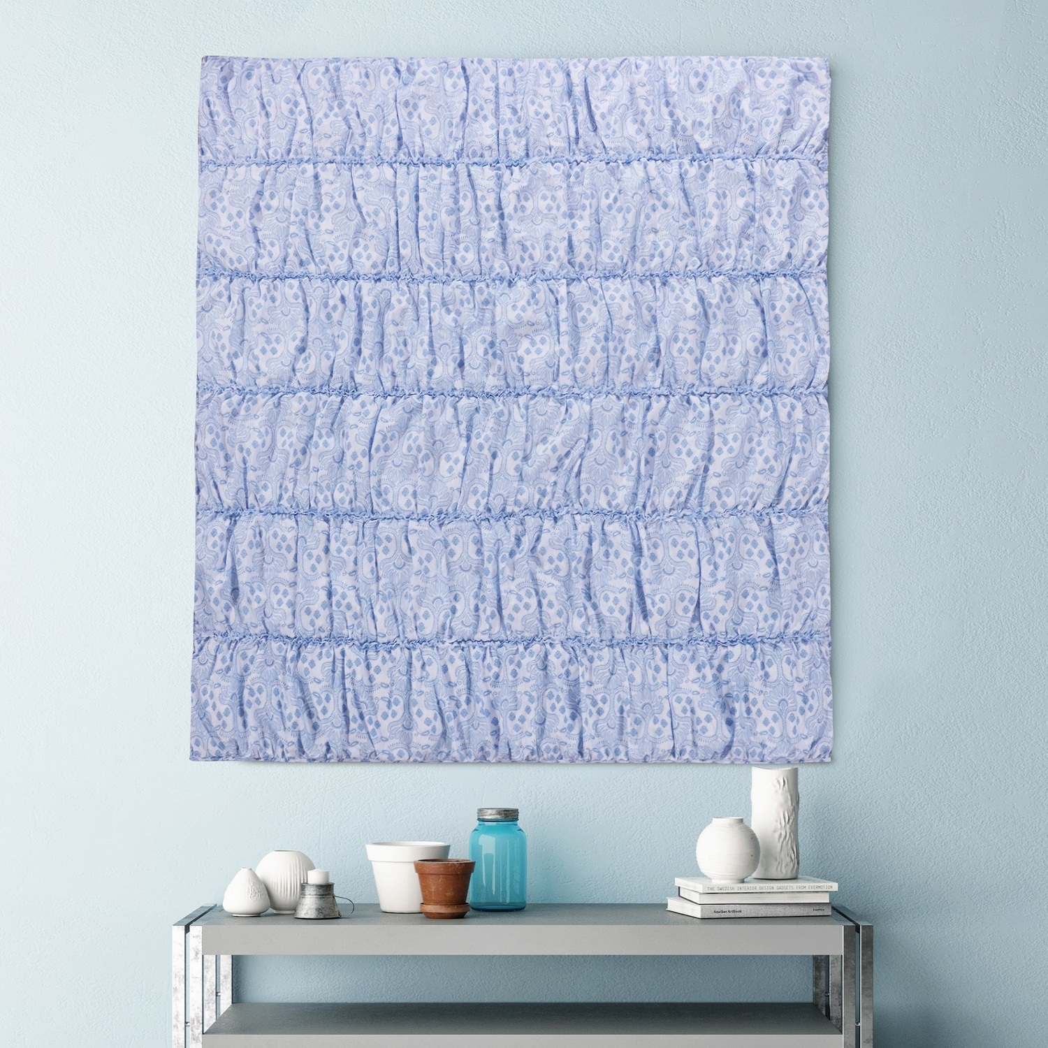 Create a romantic mood with the Helena throw. Ruffles and gathered tailoring generate loft and relaxed, vintage styling. Whimsical porcelain blue print adds subtle sophistication. Dimensions: 50x60-inch (+/- 2”). Fabrication: 100% ultra-soft microfiber face, 100% cotton back with 100% polyester fill for extra loft. Machine Wash.AccessoryPerfect accent throw for your favorite chair or sofa.Plush polyester fill adds loftPrewashed and preshrunk for extra softnessMachine washable