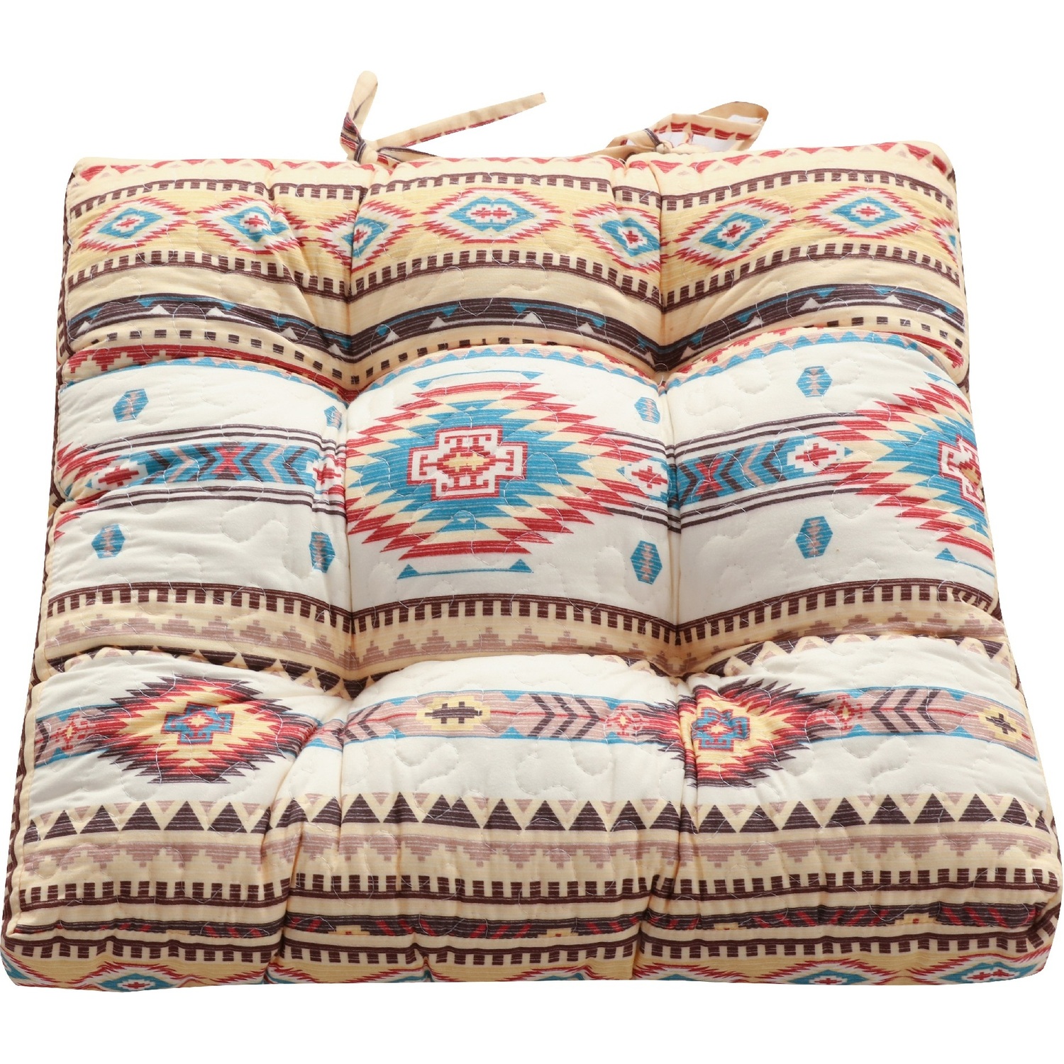 Enchant your space with a Southwestern vibe. Bring time-honored Western and native motifs into your home. Featuring traditional woven textile art in neutral colors, each chair pad measures 18x18"es and is 2"es thick. Three layers of padding, top and bottom cotton layers plus a central layer of polyester batting create durable comfort that adds fashionable flair to every chair. Two sets of cloth ties on the back corners of these chair cushions allow you to secure them to your chair stiles. Spot Clean Only. Microfiber shell with cotton and polyester fill.Furniture CushionEach chair pad measures 18x18"es and is 2"es thickThree layers of padding, top and bottom cotton layers plus a central layer of polyester batting create durable comfort that adds fashionable flair to every chairTwo sets of cloth ties on the back corners of these chair cushions allow you to secure them to your chair stilesSpot Clean Only