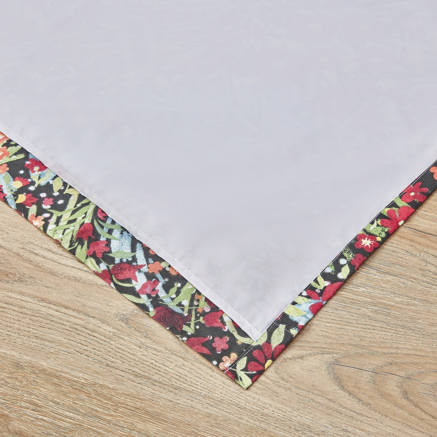 Add an enchanting glow of color to your space with the Alice curtain panel pair. Botanical blue and green reeds billow with pops of gold, coral, red and fuchsia against a black ground. Each set features two panels and two tie backs. Dimensions: Each panel measures 42"es wide x 84"es long. Total window coverage, 84"es x 84"es. Lined for increased privacy and protection from the sun. Three-inch rod pocket along the top fit most curtain rods for hanging. 100% polyester microfiber. Machine washable.WindowEach panel pair comes with two 42-inch wide x 84-inch long panels, plus two tiebacks, for an overall window coverage area of 84"es x 84"es.Component panels are lined with a solid color liner for increased privacy and sun protectionRod pocket along the top of each panel measures 3"es and fits most curtain rods for hangingMachine washable