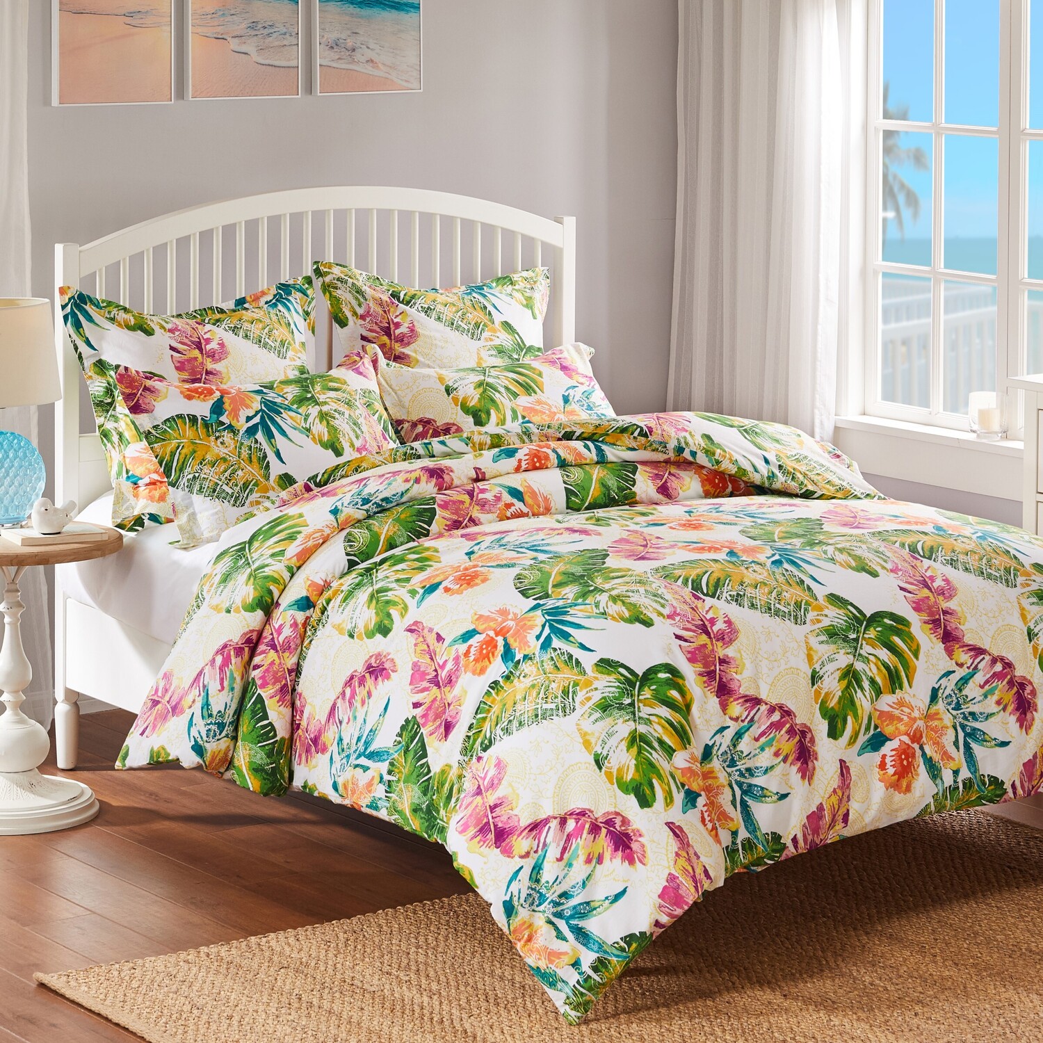 Greenland Home Fashions Tropics Coral Duvet Cover Set 2-Piece Twin 68x86+20x26, 636047444400, GL-2104ADST