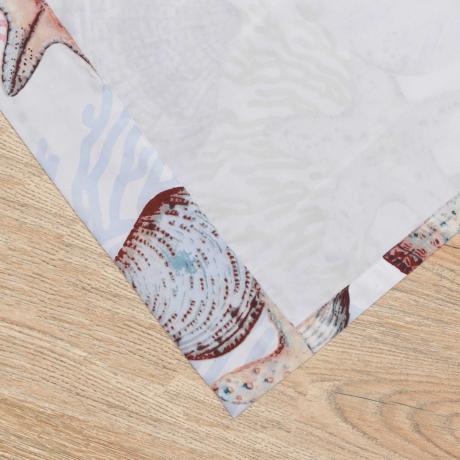 Relax in your own tropical tide pool. Create a coastal mood with the gentle lapping of crystal clear waters on a shimmering shoreline among seashells and bright corals. Lined with solid color fabric for increased privacy and sun protection, each 4-Piece curtain panel set includes two panels and two tie backs. Dimensions: Each panel measures 84"es long x 42"es wide (x2) for total coverage area of 84 x 84"es. 100% polyester face, back (2 ply). Three-inch rod pocket along the top fits most curtain rods for hanging. Machine wash. Imported.WindowEach 4-piece set features two panels and two tie backsDimensions: Each panel measures 84"es long x 42"es wide (x2). Overall dimensions of set, 84"es x 84"es.Lined for increased privacy and sun protectionMachine washable