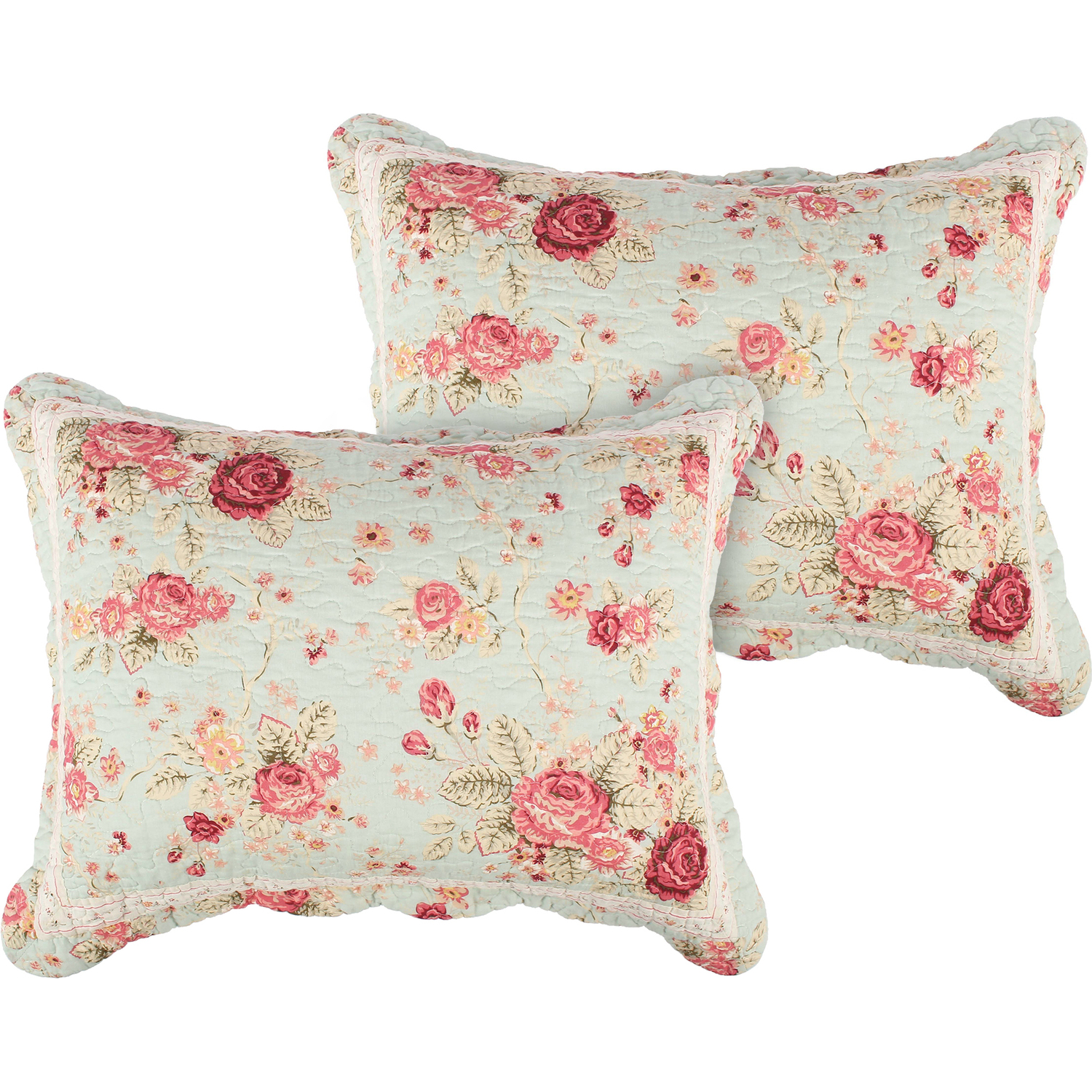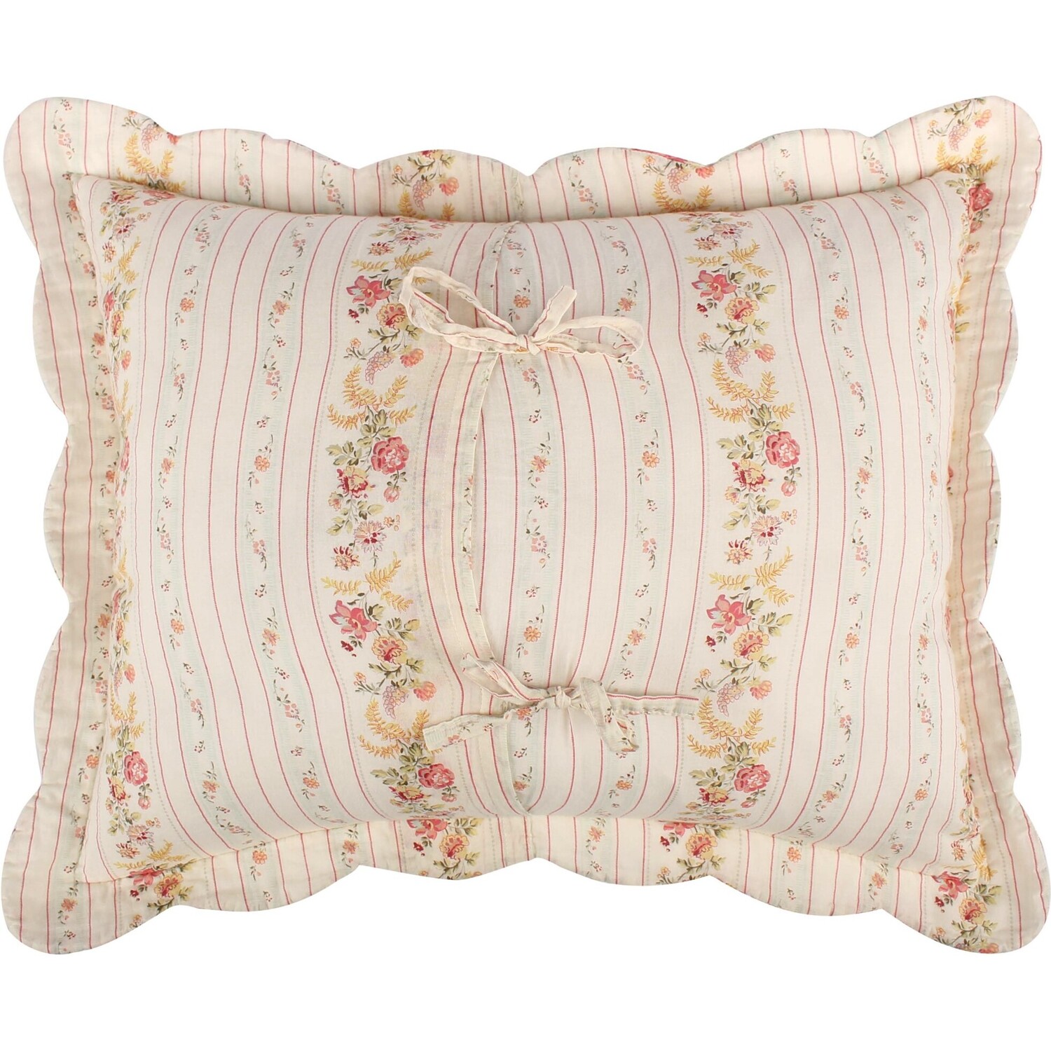 For a classic shabby chic look that will never go out of style, bring home the Antique Rose quilted pillow sham. Antique Rose, by Greenland Home Fashions, combines traditional and Victorian sensibilities with the comfort of renewable 100% cotton fibers. Featuring authentic patchwork construction, pieced, and assembled from a floral print and a pinstripe print with dainty scrolling floral embellishments, Antique Rose adds grace, charm, and beauty to any home. Finely stitched for durability with scalloped edges along its borders, Antique Rose reverses to a traditional pinstripe whole cloth print. These pillow shams feature cloth ties on either side of an envelope opening in the back to hold your pillow in place within each sham. Prewashed and preshrunk. Machine washable. Dimensions: Standard sham measures 20x26"es; King sham measures 20x36"es. All dimensions +/- 1". 100% Cotton.Sham100% COTTON face, back and fill - prewashed for extreme comfortWHAT'S INCLUDED: One standard pillow shamSAFETY TESTED and certified by OEKO-TEX® Standard 100: Tested to be free of 1000+ harmful chemicals and substances – keeping you and your loved ones safe from these threats with our products.NATURAL COMFORT: 100% cotton is prized for natural comfort. Cotton is a breathable and soft material that provides a cozy and inviting sleep environment.Machine washable