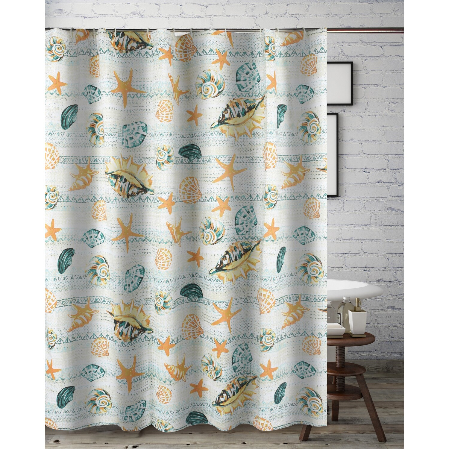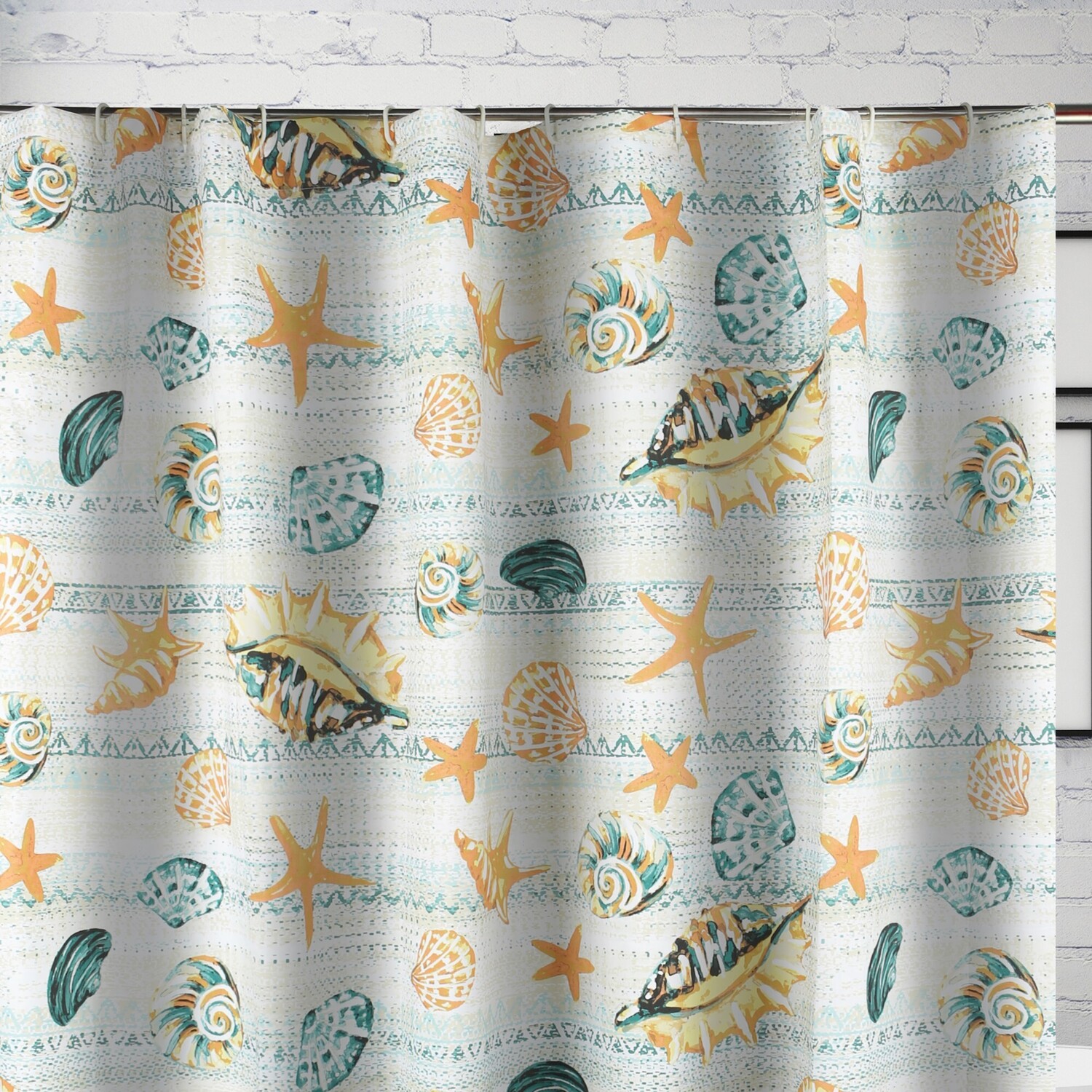 Dive into tranquility with our all-new Kona coastal collection, featuring fashions accents for your home. Immerse yourself in the calming of speckled blues and earth-tone stripes, reminiscent of a sun-kissed sandy beach. Adorned with intricately printed seashells, the Kona shower curtain is a coastal dream come true. Measuring 72"es wide and 72"es long, with reinforced buttonholes along the top making the curtain easy to hang with most shower curtain hooks, Kona shower curtains invite you to unwind in coastal elegance. Designed for use with a waterproof liner (not includedBathWHAT'S INCLUDED: One shower curtainDIMENSIONS 72"es W x 72"es LSAFETY TESTED and certified by OEKO-TEX® Standard 100: WSI Certificate # 20.HCN.11993. Tested to be free of 350+ harmful chemicals and substances – keeping you and your loved ones safe from these threats with our products.Machine washable