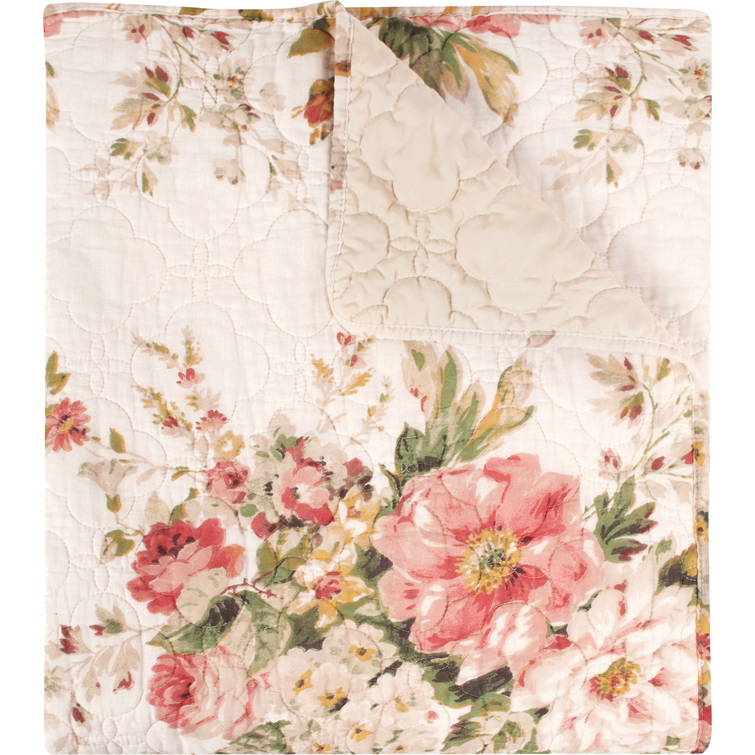 Introducing Grace, a masterpiece of comfort and style that transforms any bedroom into a serene oasis. Crafted with meticulous attention to detail, Grace brings nature's beauty into your home. Featuring a stunning floral design that captures the essence of spring, each detail is a work of art. Sink into plush softness with high-quality materials that provide ultimate comfort for a restful night's sleep. Whether it's a chilly night or a warm summer evening, Grace will keep you cozy all year round. Each Grace throw quilt is randomly cut from the floral print, so each is unique and effortlessly elevates your interior decor. Embrace beauty and enhance your space with Grace. It's not just bedding; it's an experience.AccessoryWHAT'S INCLUDED: One quilted throw blanketDIMENSIONS: Each throw measures 50"es x 60"es (+/- 1")SAFETY TESTED and certified by OEKO-TEX® Standard 100: WSI Certificate # 20.HCN.11993. Tested to be free of 350+ harmful chemicals and substances – keeping you and your loved ones safe from these threats with our products.NATURAL COMFORT: 100% cotton fabrics are prized for their natural comfort. Cotton is a breathable and soft material that provides a cozy and inviting sleep environment.Machine washable