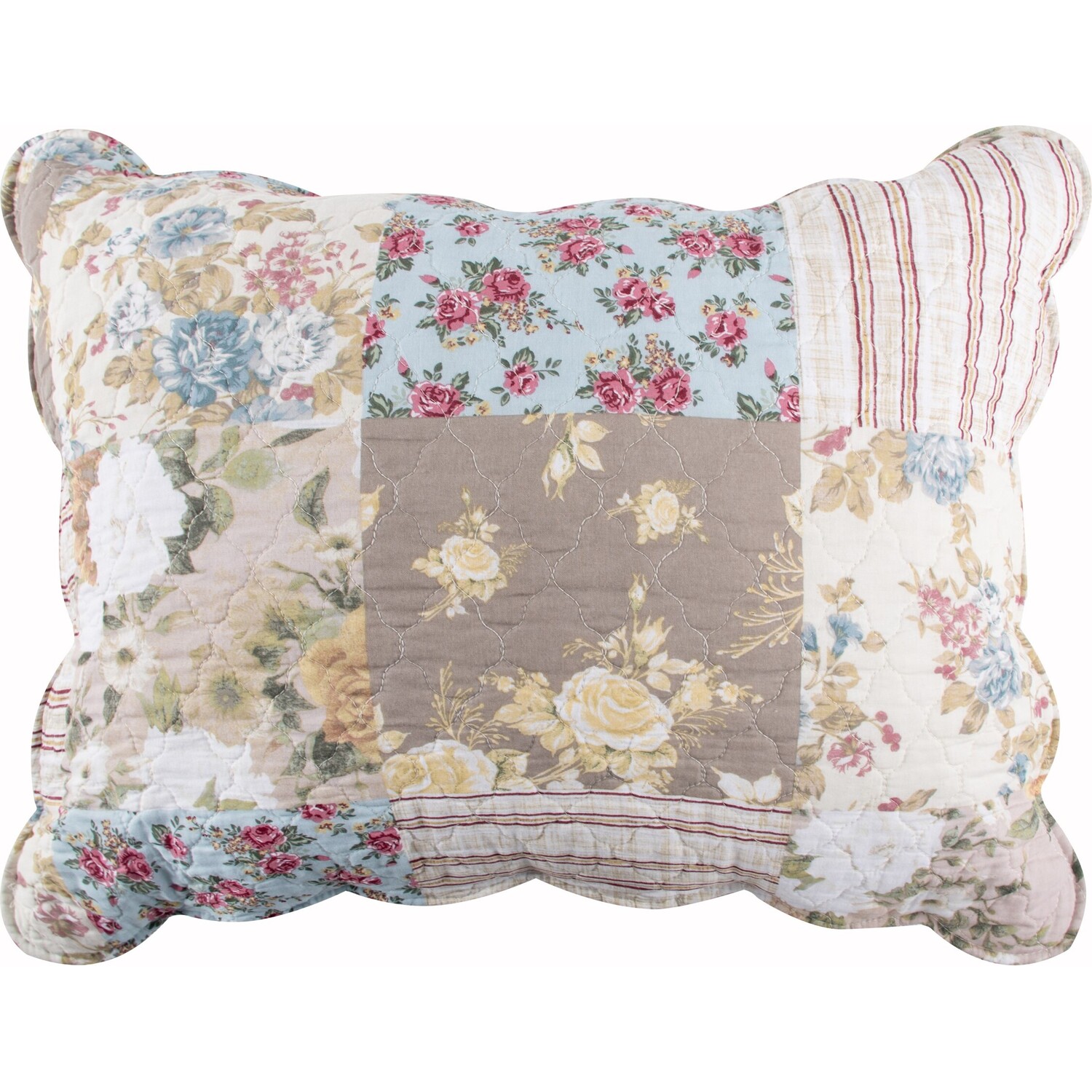 Transform your bedroom into a cozy countryside retreat with the French Country quilted pillow sham. French Country showcases timeless florals, vintage-inspired stripes, and classic motifs in a harmonious palette of soft blues, warm browns, and gentle yellows. Flip it over to reveal a reversible ticking stripe pattern, offering two versatile looks in one. Perfect for adding a touch of rustic elegance to any bedroom. Faux patchwork pattern is actually printed on whole cloth, ensuring lightweight comfort without sacrificing the look of hand-sewn craftsmanship. Whether you’re decorating a cottage, farmhouse, or modern home with vintage vibes, French Country offers you an effortless way to bring beauty and comfort to your space.ShamPREWASHED and pre-shrunk for a soft, comfortable feel right out of the packageWHAT'S INCLUDED: One quilted pillow shamDIMENSIONS: Standard sham measures 20"es x 26"es; King sham measures 20"es x 36"es (+/- 1")DOUBLE DOWN on the look with extra pillow shamsEASY CARE Machine Washable