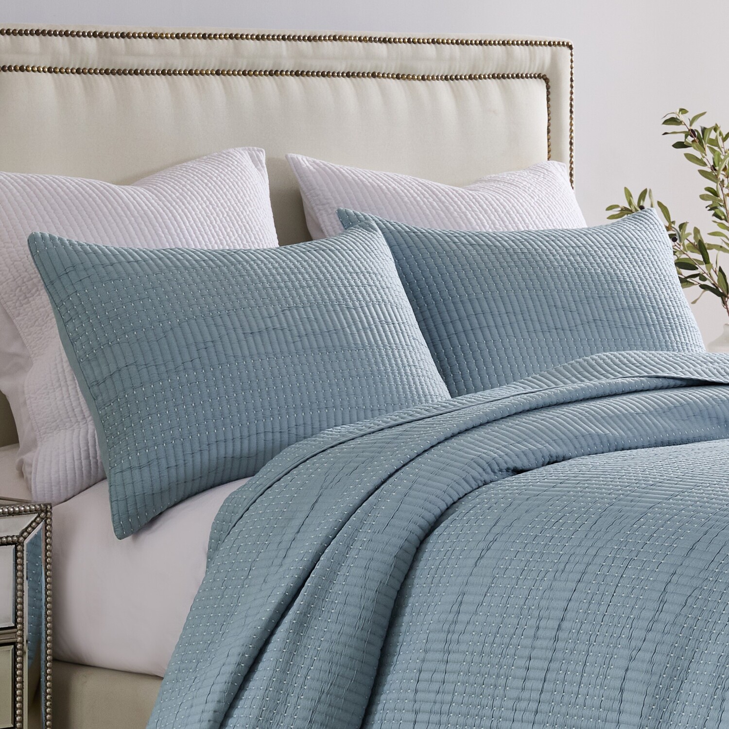 Introducing the Cosmo Collection—a modern masterpiece designed to elevate your bedroom with effortless style. Crafted in luxurious woven jacquard matelasse, this lightweight bedding set features intricate textural stitching and a sleek solid-color design, offering both sophistication and versatility. Available in the season’s most sought-after fashion colors, Cosmo’s coverlet sets and pillow shams are perfect for layering or standing alone, transforming your space into a contemporary retreat. Redefine your bedroom aesthetic with Cosmo—where timeless elegance meets everyday comfort.ShamDimensions: Standard sham 20x26"es; King sham 20x36"es (+/- 2-inches)Zipper along the side to hold your pillow in place makes these shams truly reversible so you easily change up the look of your bedSAFETY TESTED and certified by OEKO-TEX® Standard 100: WSI Certificate # 20.HCN.11993. Tested to be free of 350+ harmful chemicals and substances – keeping you and your loved ones safe from these threats with our products.PREWASHED and pre-shrunk for a soft, comfortable feel and a perfect fit right out of the packageEASY CARE Machine Washable