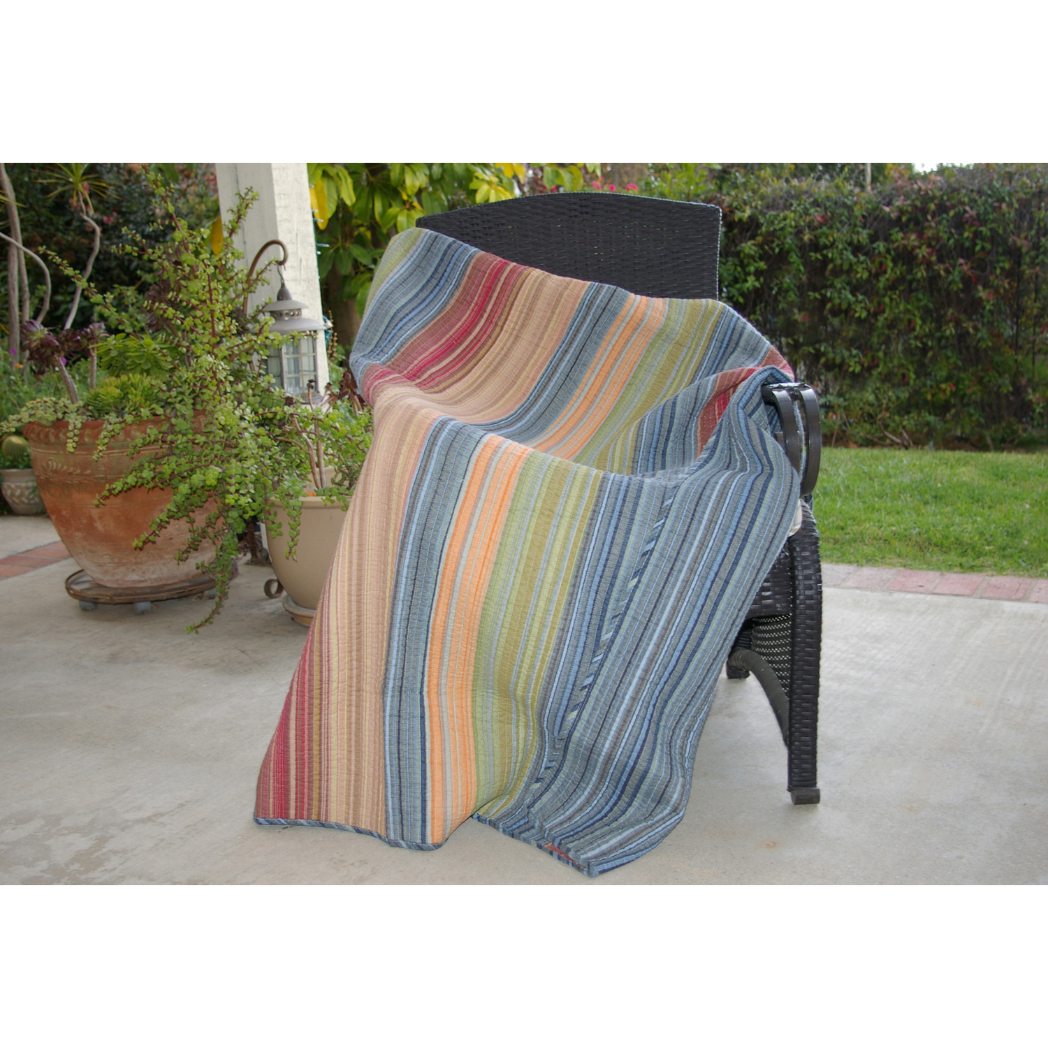 Chic and versatile, the Katy quilted throw features a variety of warm and cool colors. With a broad brushstroke of tasteful tones to compliment any bedroom theme, Katy reverses to a coordinating blue stripe. Channel stitching adds surface interest and durability. Throw dimensions: 50x60”. Made from 100% prewashed and preshrunk cotton.Accessory100% COTTON face, back and fill - prewashed for extreme comfortVERSATILE LAYERING PIECE: Use as a throw blanket for your couch or as a layering piece on top of your bed. Also makes a great tapestry for your wall.SAFETY TESTED and certified by OEKO-TEX® Standard 100: Tested to be free of 1000+ harmful chemicals and substances – keeping you and your loved ones safe from these threats with our products.NATURAL COMFORT: 100% cotton is prized for natural comfort. Cotton is a breathable and soft material that provides a cozy and inviting sleep environment.Machine washable