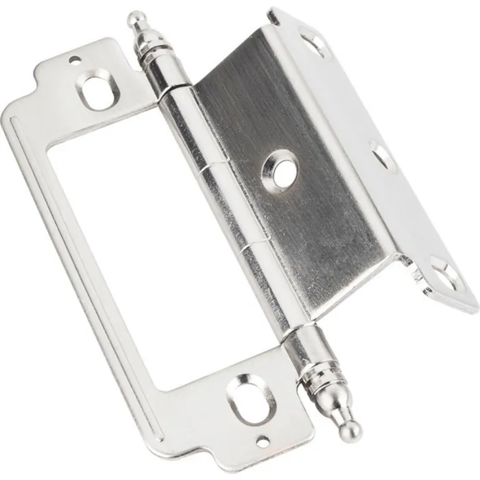 4" Overall Height Full Inset Partial Wrap 3/4" Flush Hinge with Decorative Finial Tip.Finish: Satin Nickel