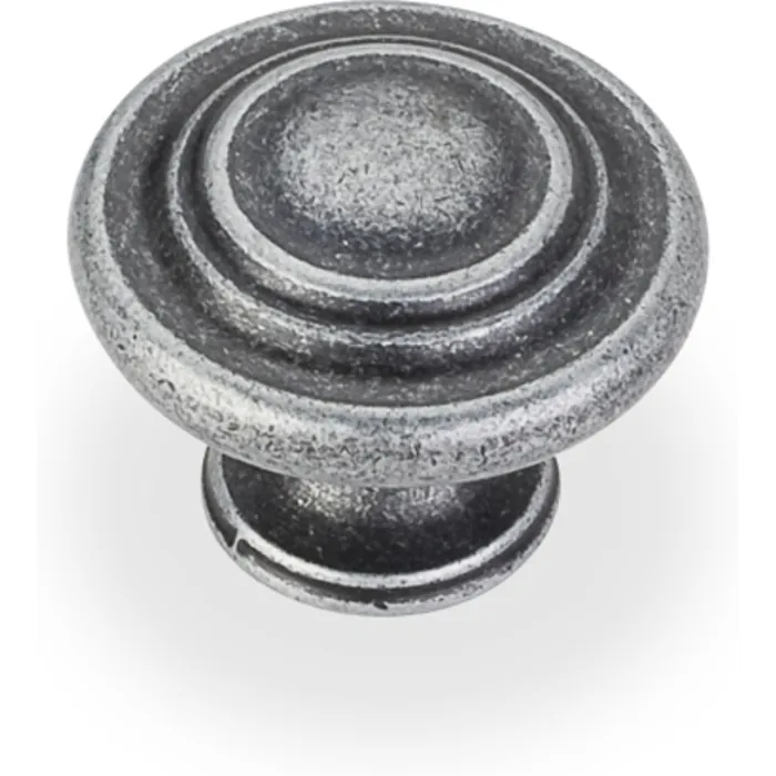 1-5/16" Diameter Cabinet Knob. Packaged with one 8-32 x 1" and 1-3/4" Break-away screw. Finish: Distressed Antique Silver