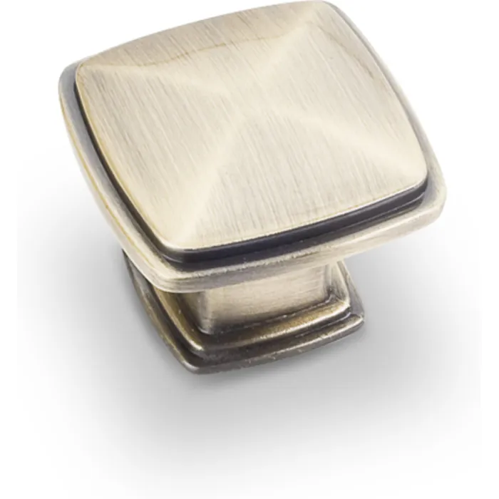 1-3/16" Overall Length Plain Square Cabinet Knob. Packaged with one 8-32 x 1" and 1-3/4" Break-away screw. Finish: Brushed Antique Brass