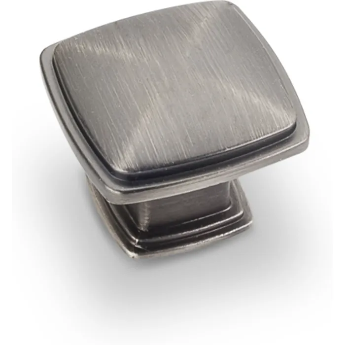 1-3/16" Overall Length Plain Square Cabinet Knob. Packaged with one 8-32 x 1" and 1-3/4" Break-away screw. Finish: Brushed Pewter