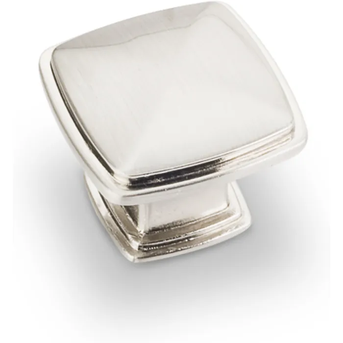 1-3/16" Overall Length Plain Square Cabinet Knob. Packaged with one 8-32 x 1" and 1-3/4" Break-away screw. Finish: Satin Nickel