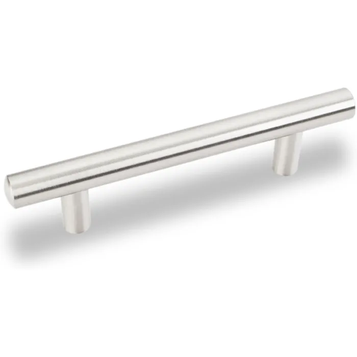 152 mm (6") Overall Length 9/16" Diameter Steel Cabinet Bar Pull. Holes are 96 mm center-to-center. Packaged with two 8-32 x 1" and two Break-away screws. Finish: Satin Nickel
