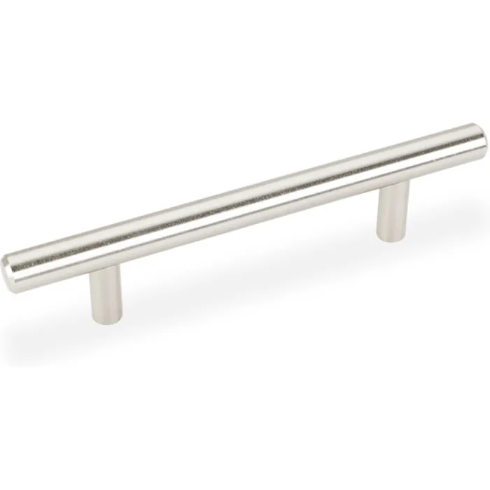 156 mm (6-1/8") Overall Length 7/16" Diameter Steel Cabinet Bar Pull with Beveled Ends. Holes are 96 mm center-to-center. Packaged with two 8-32 x 1" and two Break-away screws. Finish: Satin Nickel