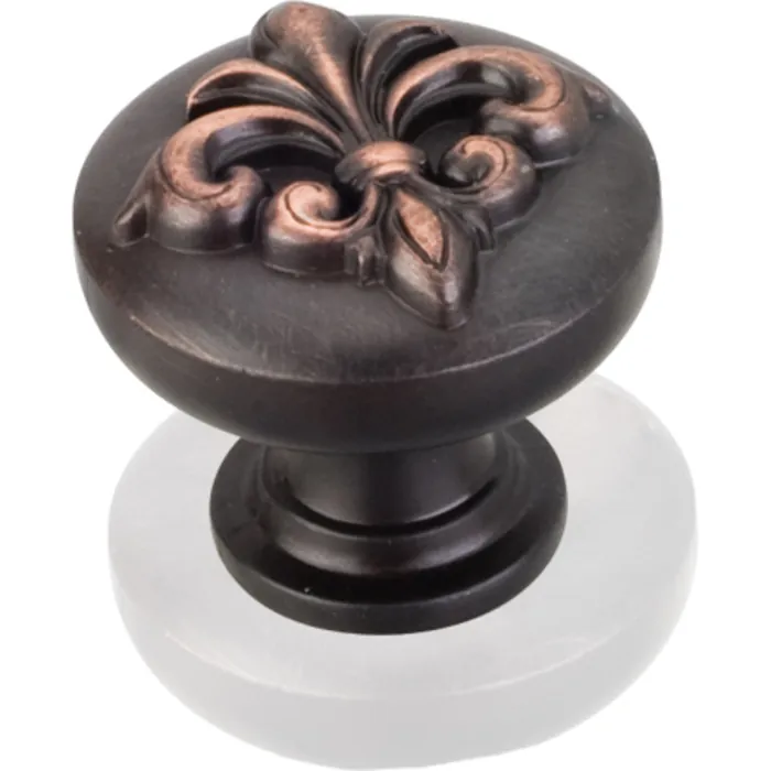 1-3/8" Overall Length Raised Fleur-de-lis Cabinet Knob. Packaged with one 8-32 x 1" and 1-3/4" Break-away screw. Finish: Brushed Oil Rubbed Bronze