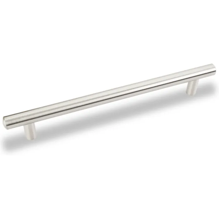 242 mm (9-1/2") Overall Length 9/16" Diameter Steel Cabinet Bar Pull. Holes are 192 mm center-to-center. Packaged with two 8-32 x 1" and two Break-away screws. Finish: Satin Nickel
