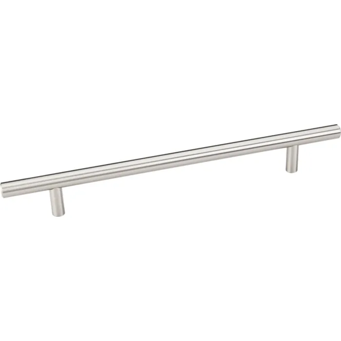 272 mm (10-11/16") Overall Length 7/16" Diameter Steel Cabinet Bar Pull with Beveled Ends. Holes are 192 mm center-to-center. Packaged with two 8-32 x 1" and two Break-away screws. Finish: Satin Nickel