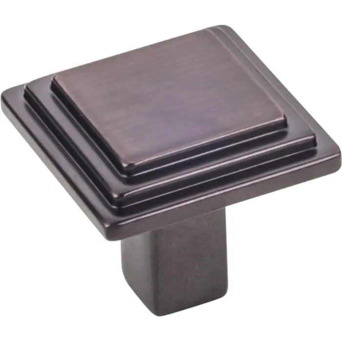 1-1/8" Overall Length Stepped Square Cabinet Knob. Packaged with one 8-32 x 1" and 1-3/4" Break-away screw. Finish: Brushed Oil Rubbed Bronze