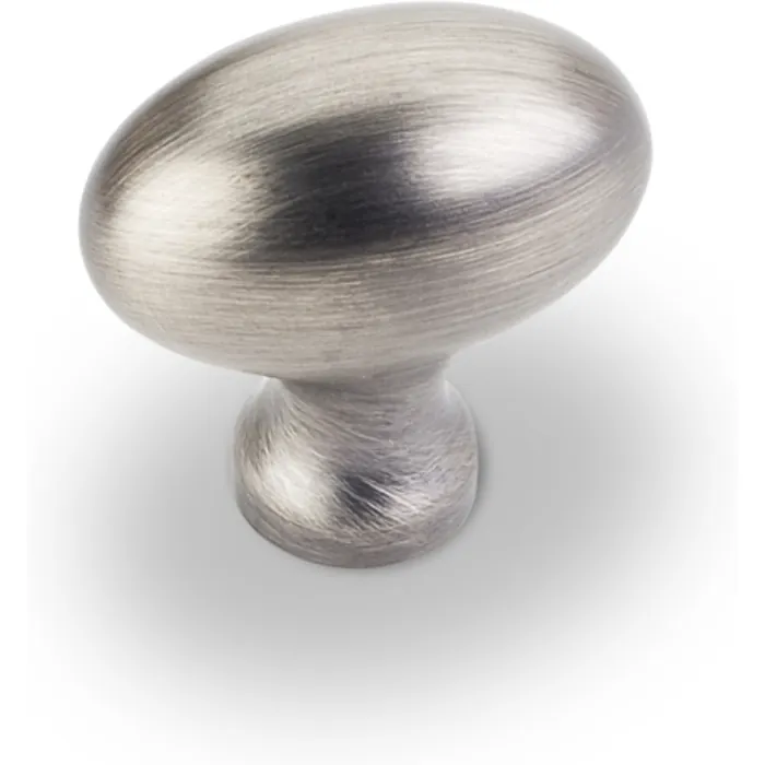1-9/16" Overall Length Football Cabinet Knob. Packaged with one 8-32 x 1" and 1-3/4" Break-away screw. Finish: Brushed Pewter