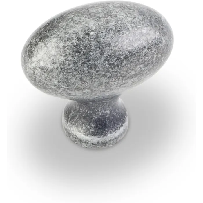 1-9/16" Overall Length Football Cabinet Knob. Packaged with one 8-32 x 1" and 1-3/4" Break-away screw. Finish: Distressed Antique Silver