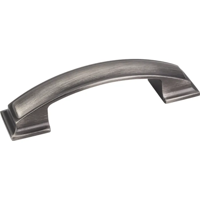 5" Overall Length Pillow Top Cabinet Pull. Holes are 96 mm center-to-center. Packaged with two 8-32 x 1" and two Break-away screws. Finish: Brushed Pewter