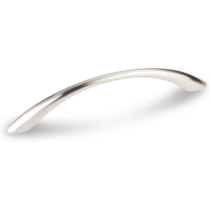 6-1/4" Overall Length Arched Cabinet Pull. Holes are 128 mm center-to-center. Packaged with two 8-32 x 1" and two Break-away screws. Finish: Satin Nickel