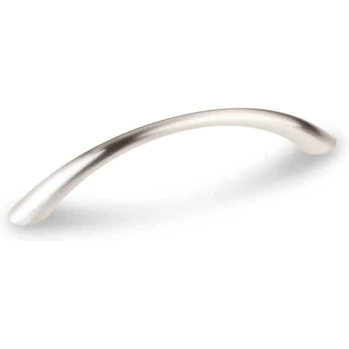 4-1/2" Overall Length Arc Cabinet Pull. Holes are 96 mm center-to-center. Packaged with two 8-32 x 1" and two Break-away screws. Finish: Satin Nickel