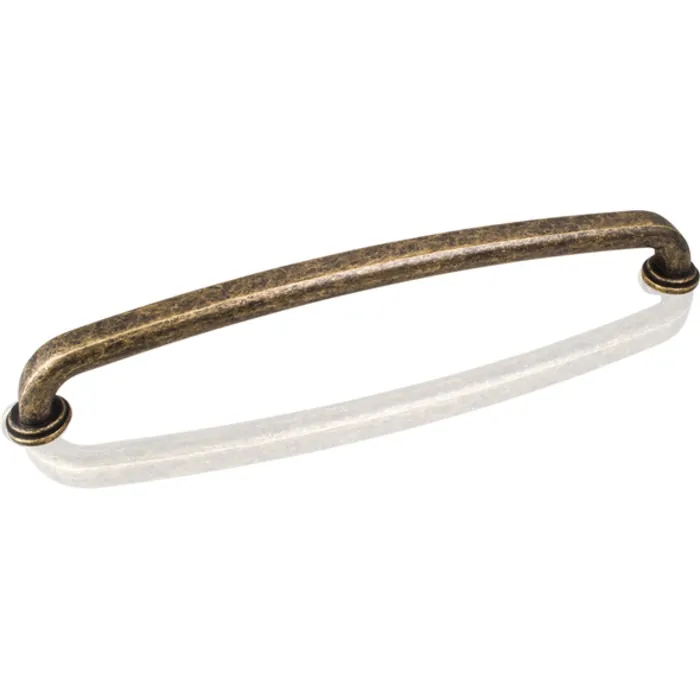 13-1/16" Overall Length Gavel Appliance Pull. Holes are 12" center-to-center. Packaged with two 8-32 x 1" screws. Finish: Distressed Antique Brass