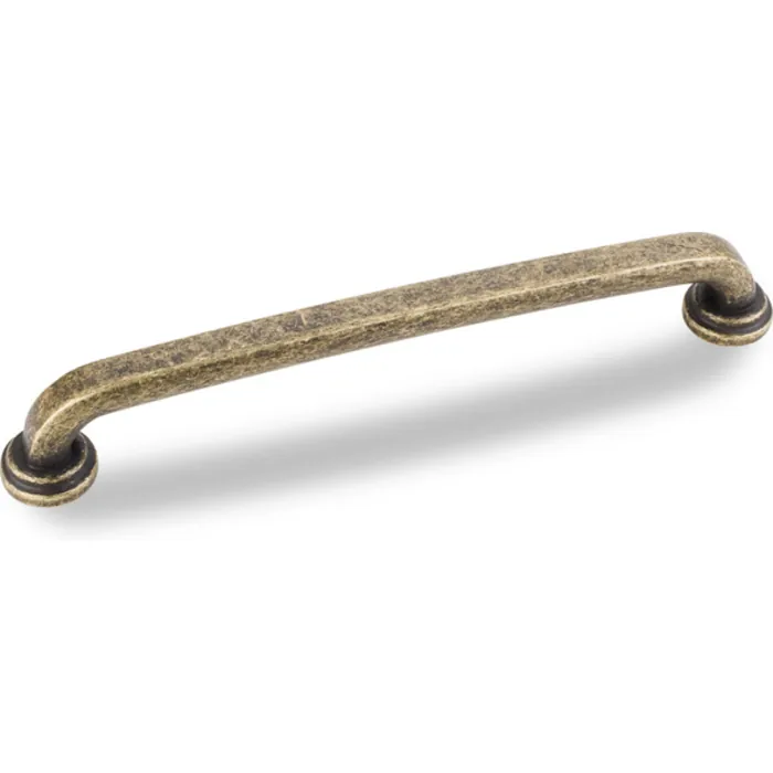7-1/8" Overall Length Gavel Cabinet Pull. Holes are 160 mm center-to-center. Packaged with two 8-32 x 1" screws. Finish: Distressed Antique Brass